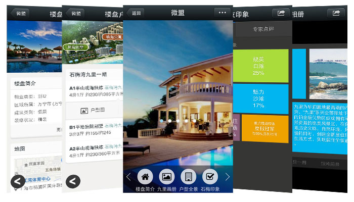 微房产是利用微商通平台打造的一款全新超炫酷的房产官方网站,其功能非常强大,包含了楼盘介绍、子楼盘管理、户型介绍及户型图、楼盘相册、房友印象以及专家点评等功能,更有360度全景看房超强大功能震撼登场!花几分钟时间即可打造微房产官网。