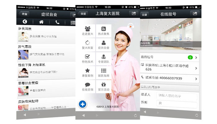 用户可通过微商通平台实现在线挂号、内容设置、预约查询、预约统计的一整套服务体系,能够有效解决患者挂号难、排队累、就医不方便等一系列难题