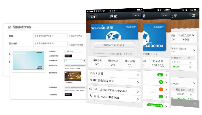 微信会员卡通过在微信内植入会员卡,基于全国4亿微信用户,帮助企业建立集品牌推广、会员管理、营销活动、统计报表于一体的微信会员管理平台。清晰记录企业用户的消费行为并进行数据分析;还可根据用户特征进行精细分类,从而实现各种模式的精准营销。