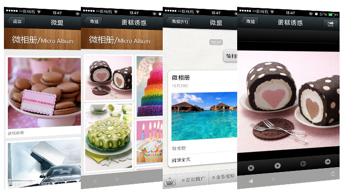 微相册作为微商通平台的一项主打基本功能,为微商通用户提供图片的存储和展示服务,是基于图片兴趣分享的社区型产品。在微相册里,您可以方便的创建相册,轻松地发布您需要展示的照片,还可以拓展为商家开展活动的一种展现方式。
